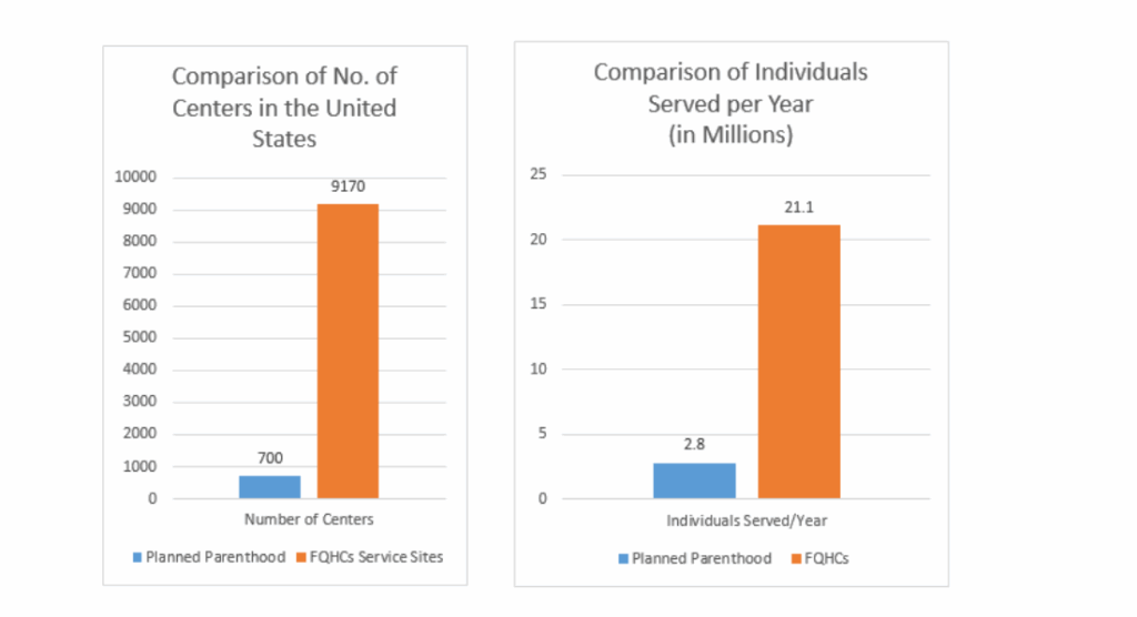 - There are 13 times as many Federally Qualified Health Centers as Planned Parenthood clinics, where people can go for quality, low-cost healthcare.